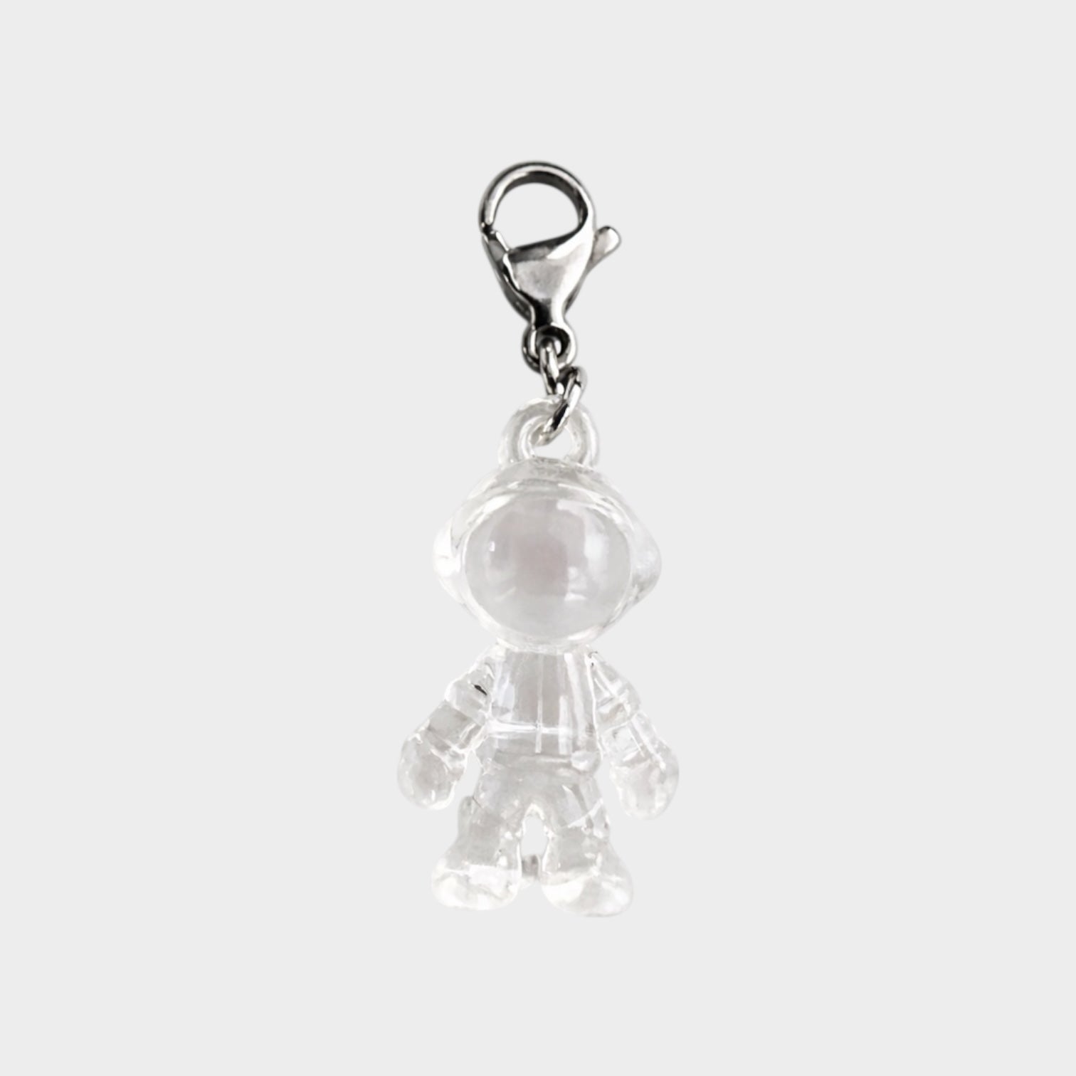 Blast off in style with this crystal-clear astronaut charm! Lightweight with a glossy finish and an easy clip-on clasp—perfect for bags, keys, bracelets, or charm chains.