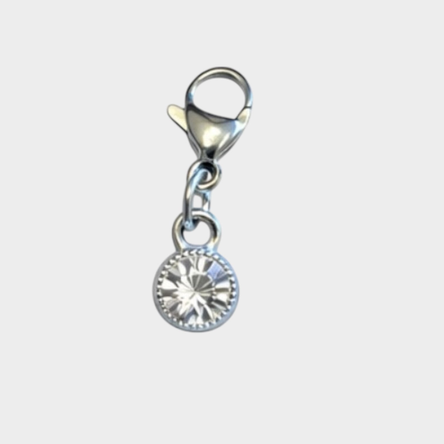Add the perfect pop of sparkle with these mini crystal clip charms! Each charm features a round rhinestone gem with a silver lobster clasp so you can easily clip it onto shoe laces, phone charm straps, keychains, purses, or bracelets. Available in multiple colors—mix and match your favorites.
