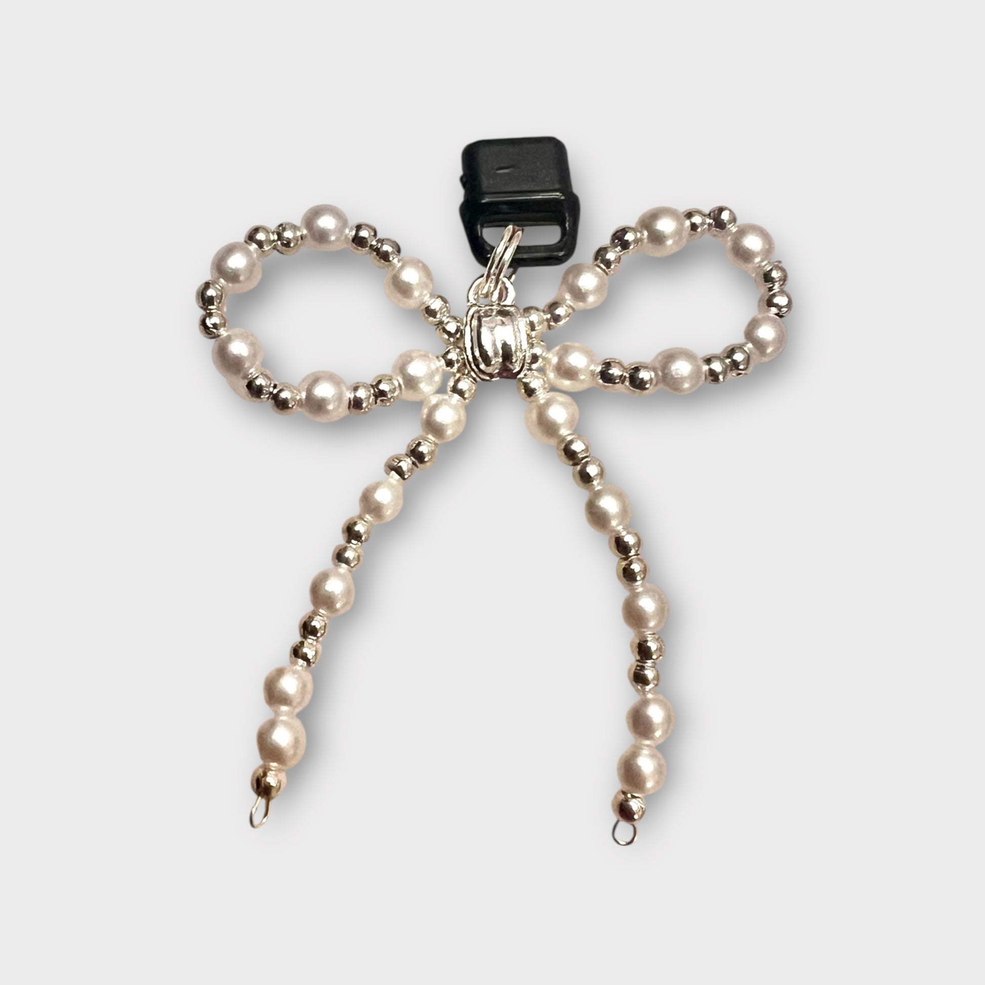 Delicate and customizable, our Pearl Beaded Bow Phone Charm is designed to add elegance and personality to your device. Made with pearl-like and silver beads, this charm features a bendable structure so you can gently shape the bow to your liking. Plug it into your phone’s charging port for a timeless accessory that’s as unique as you are.
