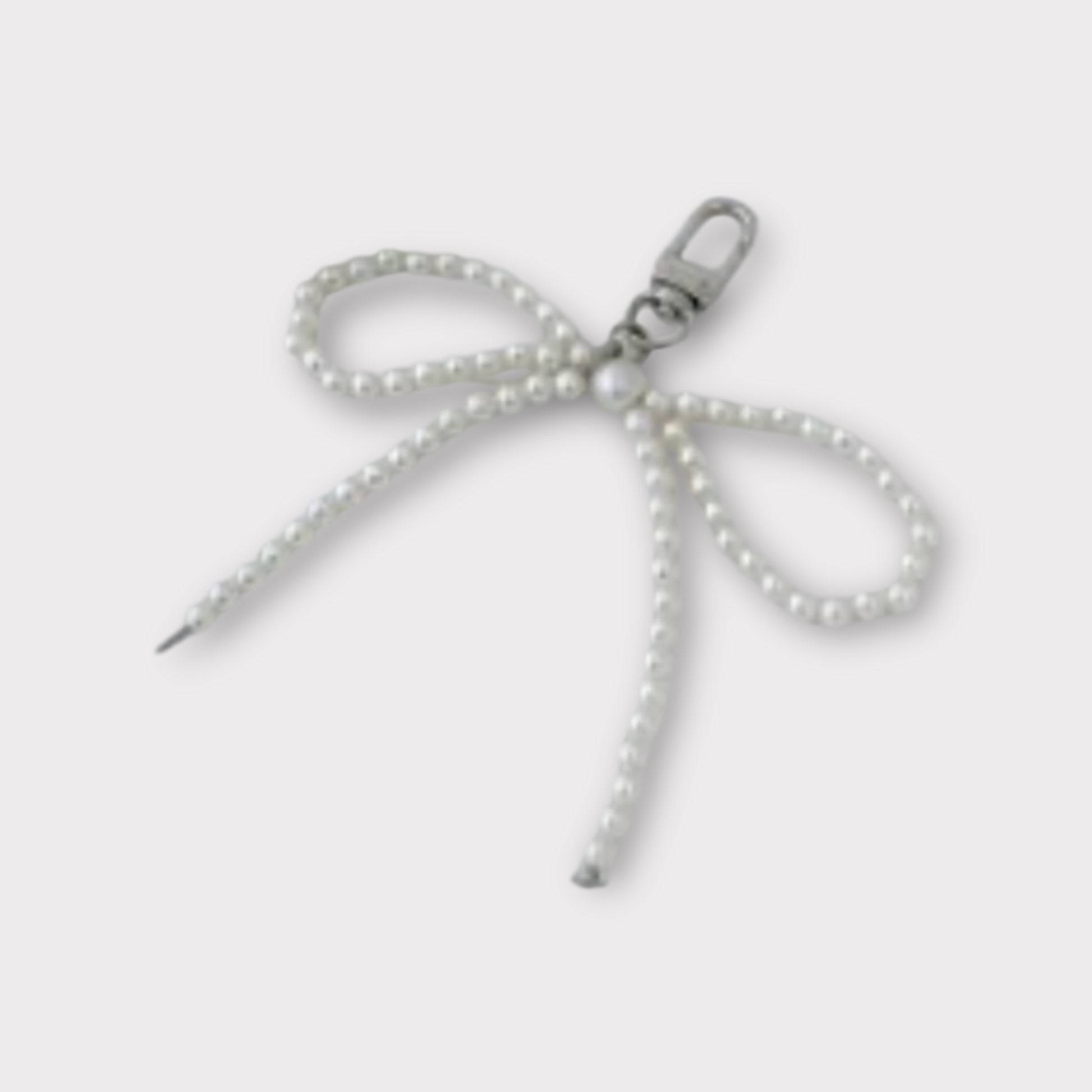 Add a touch of timeless elegance to your favorite bag with our Pearl Bow Bag Charm. Designed with glossy faux pearls and a flexible wire core, this dainty bow holds its shape while offering a soft, feminine flair. The silver-tone clasp easily attaches to handbags, backpacks, or keyrings—instantly elevating any look with classic charm and modern grace.