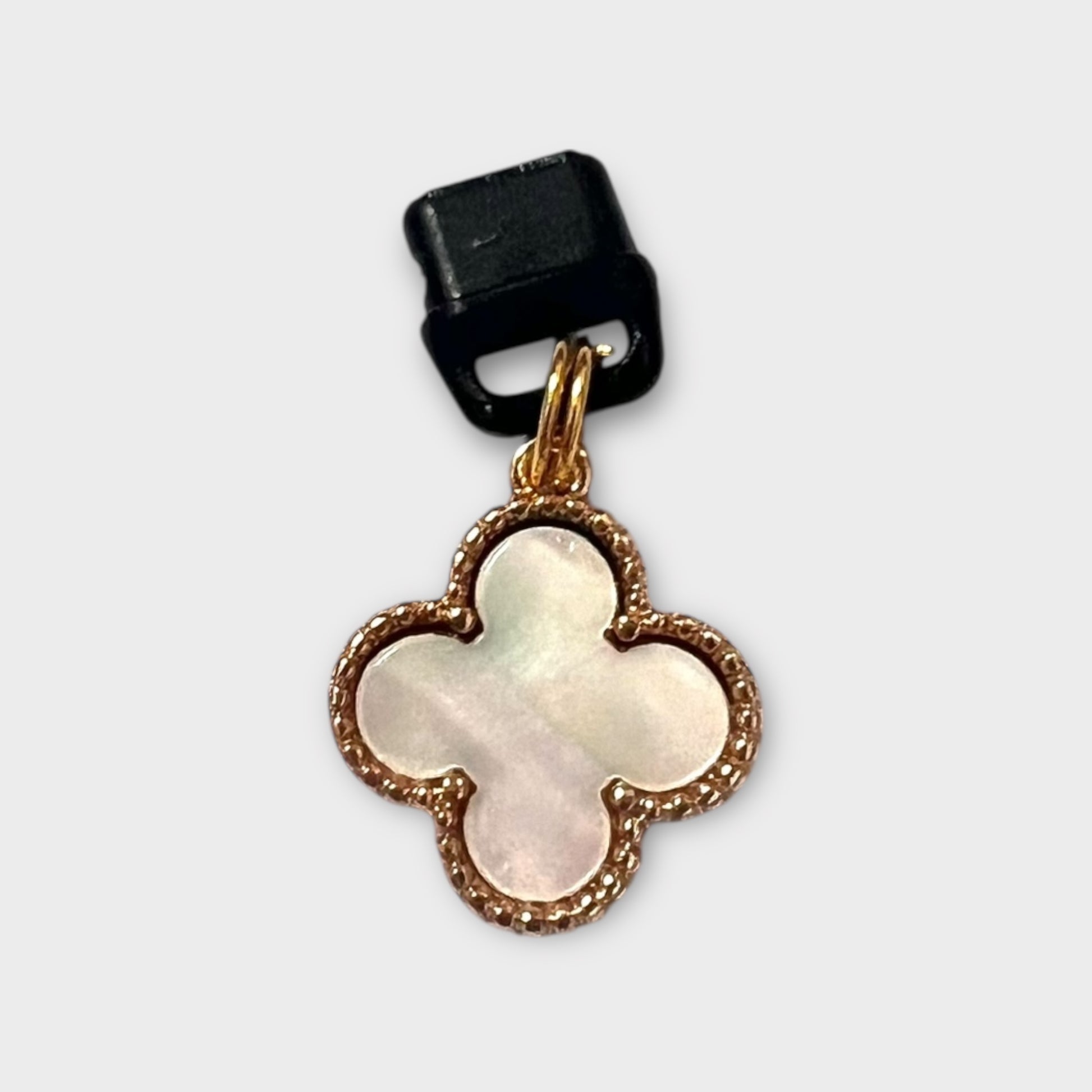This elegant charm features a classic quatrefoil design with a glossy finish, adding a touch of timeless style to your phone. Lightweight, chic, and perfect for everyday use or gifting.